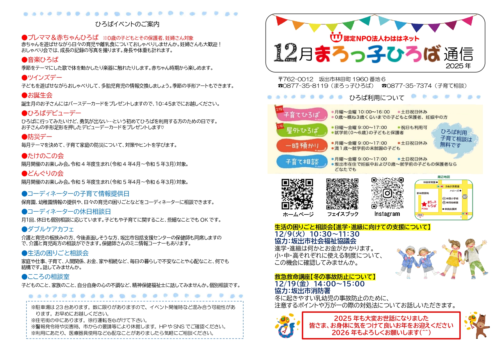 さぬきこどもの国、はぐはぐランドうたづ、神愛館、あそvivaぶんぶん、国分寺支所、国分寺図書館、新居東児童館、新名柏原児童館、国分児童館、イオン坂出店、イオンタウン宇多津、ハローズ林田店、ユープラザ宇多津、スーパーセンター宇多津、ビッグ国分寺など(順不同)