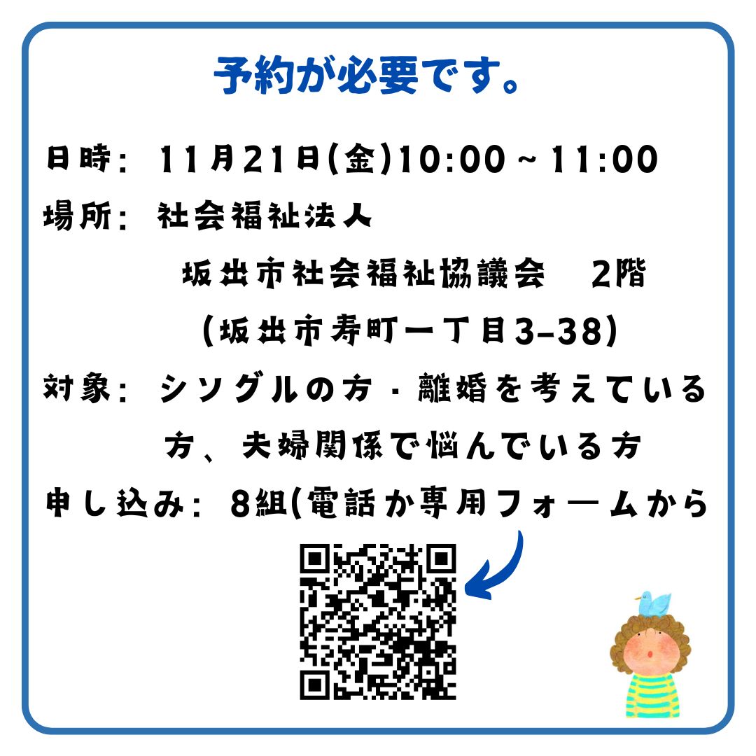11月【シングル・離婚を考えているかたの為の座談会】は